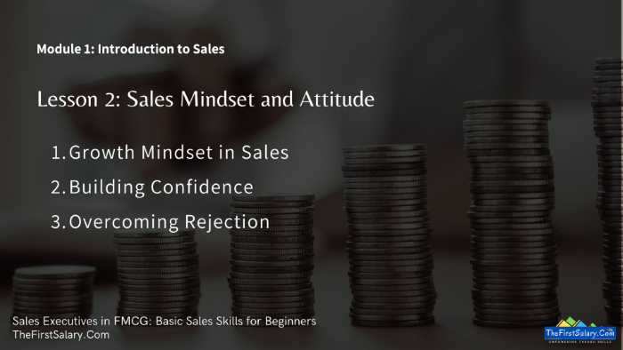 Success in sales requires more than just skills. A strong mindset and positive attitude are key to overcoming challenges in this competitive field. This lesson will help learners understand how to develop a growth mindset, build confidence, and handle rejection. By the end of this lesson, learners will know how these elements contribute to a thriving sales career.